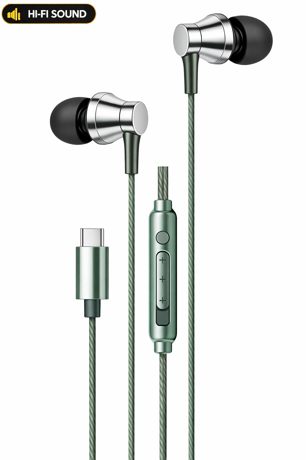 Premium Type-C Wired Earphones with Deep Bass and HD Mic. Durable tangle-free cable, compatible with all Type-C smartphones, tablets, and laptops. High-quality audio at factory-direct prices.